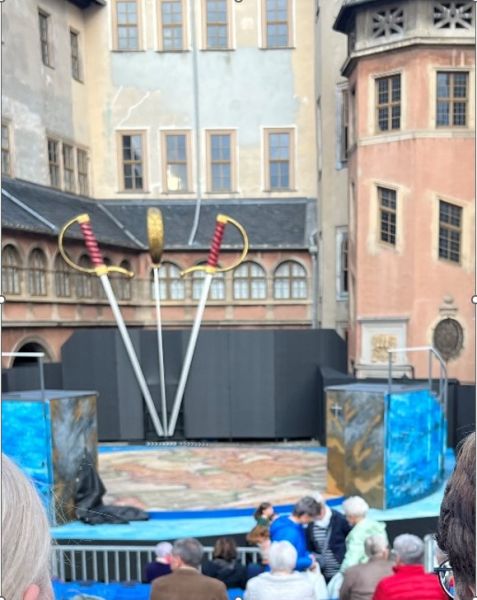 Wir trafen uns mit interessierten Eltern am Eingang zu den Schlossfestspielen, nahmen unsere Plätze ein und sahen so manches bekannte Humboldtianergesicht im Publikum. Die Aufführung war unterhaltsam und kurzweilig, die Melodien eingängig und die Geschichte um Verrat und Glaubenskriege gut geschildert. Wer wollte konnte über mahnende Worte zum Thema Töten in Gottes Namen und Frauenrollen im 17. Jahrhundert nachdenken. Andere ließen sich von dem Thema der Freundschaft und Zielstrebigkeit inspirieren oder genossen schlichtweg die schöne Musik.