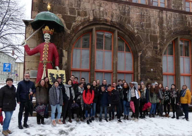 Anlässlich des Deutsch-Französischen Tages am 22. Januar, der 2003 zum 40. Jahrestages der Unterzeichnung des Élysée-Vertrages ins Leben gerufen wurde, unterzeichneten Emmanuel Macron und Angela Merkel den Vertrag von Aachen über die deutsch-französische Zusammenarbeit und Integration und zwischen dem Thüringer Bildungsministerium und der Akademie Clermont-Ferrand (Auvergne-Rhône-Alpes) wurde die bildungspolitische Rahmenvereinbarung für weitere fünf Jahre fortgeschrieben. Das Humboldt-Gymnasium Nordhausen empfing in der Woche, die vor allem in vielen Bildungseinrichtungen im Zeichen der deutsch-französischen Freundschaft steht, eine Delegation aus dem Lycée Charles und Adrien Dupuy in Le Puy-en-Velay, académie de Clermont-Ferrand. Bei dieser ersten Begegnung zwischen Schülerinnen und Schülern, Lehrerinnen und Lehrern sowie Vertretern beider Schulleitungen wurde in feierlichem Rahmen im Museum Tabakspeicher mit der Unterzeichnung eines Partnerschaftsvertrages der Grundstein für eine dauerhafte freundschaftliche Beziehung zwischen beiden Einrichtungen gelegt.