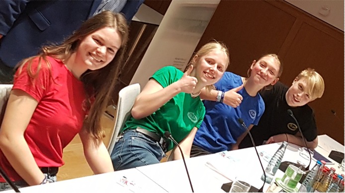 Die Spannung steigt und souverän beginnen die vier Neuntklässler, Lieselotte Kessel, Tamara Löser und Florence Rüdiger und Elias Unger, die Präsentation, die nicht nur die Arbeit an sich, sondern auch die Motivation und die Arbeitsphase in einem Mix aus Film und Vortrag vorstellt. Dabei moderieren die Schüler immer einen Teil des Films, der als Produkt im Rahmen des Projektes entstand, an und ordnen den Inhalt ein. Danach wird die Filmsequenz, von den Schülern im Stil einer Dokumentation erstellt, abgespielt und der nächste Schüler ergreift das Wort.