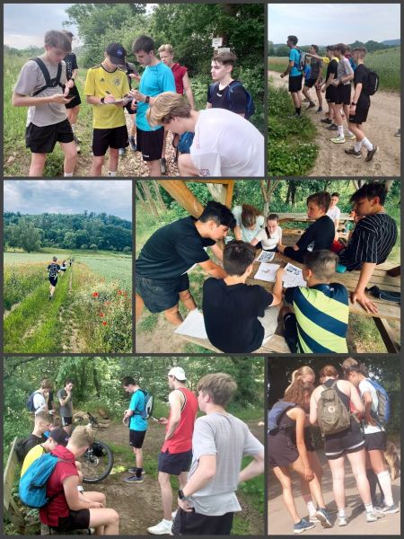 Neben Himmelsrichtungen müssen Bäume bestimmt, Wanderwege analysiert, chemische Verbindungen definiert, Belastungs- und Erholungsherzfrequenzen gemessen, Wegweiser geordnet bzw. gestaltet und der Kuh vom Kuhberg ein Name gegeben werden. In weniger als 2 Stunden erreichen alle Gruppen aufgrund ihrer „mega“ Orientierungsqualitäten, vorbildlichen Team- und überragenden Laufleistungen das Warttürmchen im Park Hohenrode.