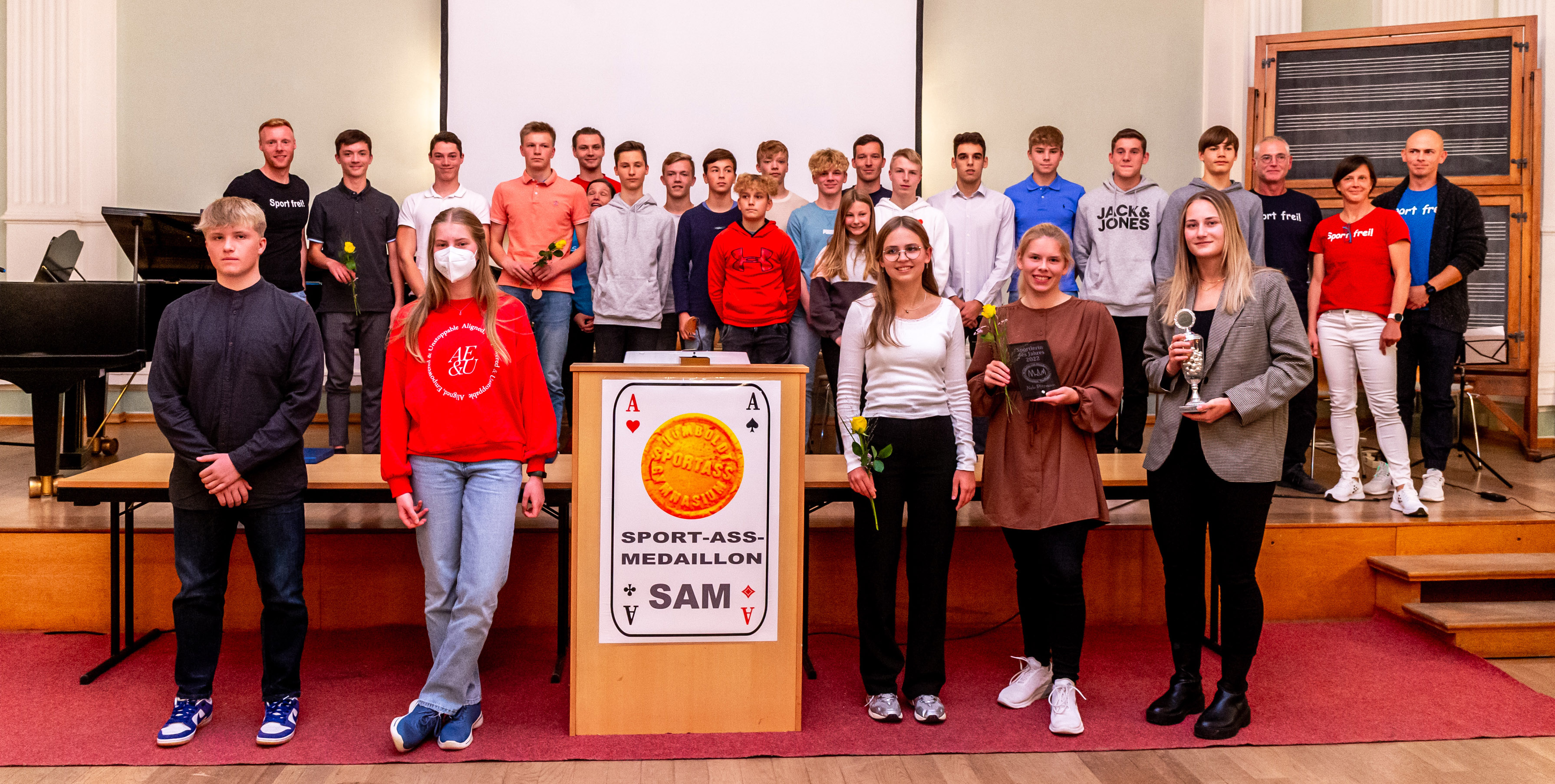 Als besonderes Geschenk erhielten alle Preisträger das Sportass-Medaillon (SAM). Dieses wird im Vorfeld von Hand geformt, dann einen Tag lang bei 1000 Grad gebrannt und abschließend mit einem Bändchen vervollständigt. Jedes Medaillon ist ein Unikat, wie seine Träger.
