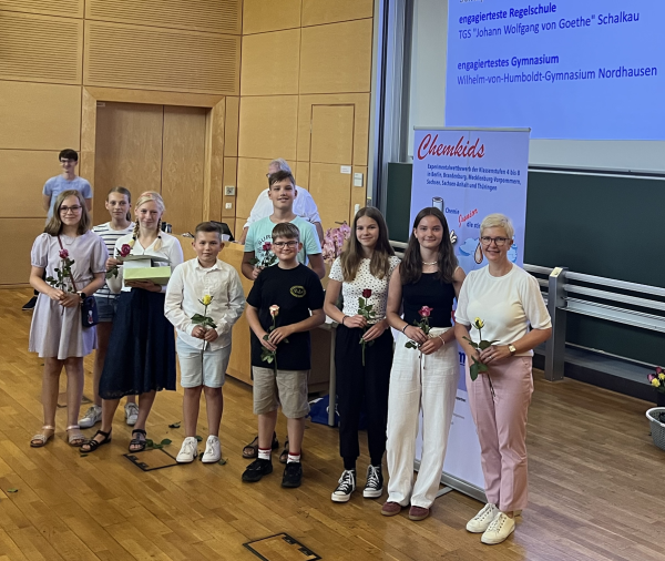 Im Anschluss erfolgte die Ehrung der Chemkids mit der Übergabe der Preise in Form von Chemiebaukästen und Buchpreisen.