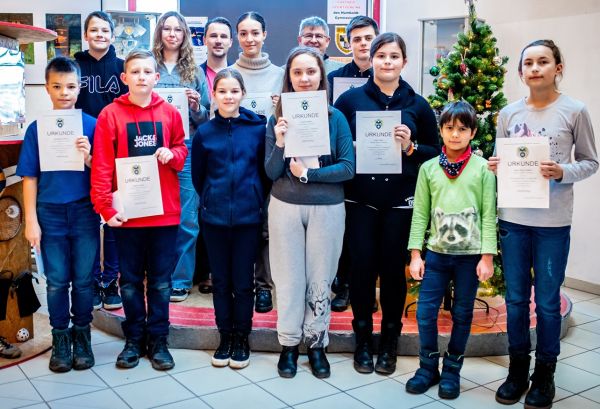 Ganze acht Schüler belegten im Wettbewerb gegen die anderen beiden Gymnasien in unserer Region sogar Spitzenplätze. Drei dieser Schüler - Sarah Lattermann (Klasse 6), Jayden Karl (Klasse 6), Annbritt Henze (Klasse 8) - haben durch ihre erreichten Punktzahlen Aussichten zur nächsten Runde eingeladen zu werden.