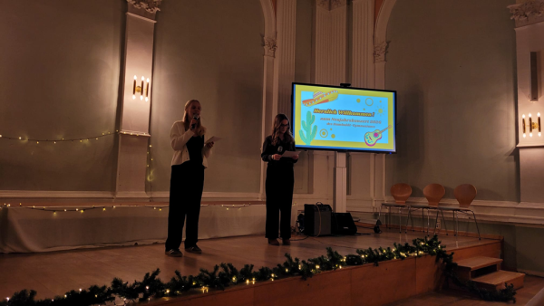 Am Abend des 20. Januars ging es in der Aula des Humboldt-Gymnasiums musikalisch zu: Das Neujahrskonzert der 12. Klassen fand statt - ganz unter dem Motto „Abios Amigos - Nach Siesta kommt Fiesta!“ Der diesjährige Abiturjahrgang bemühte sich mit allen Mitteln, dem Publikum ein abwechslungsreiches Programm zu bieten. Dies konnte mit Bravour gemeistert werden. So haben nicht nur Schülerinnen und Schüler, die damit vertraut sind, ihr musikalisches Talent auf der Bühne bewiesen, sondern auch solche, die seit vielen Jahren kein Instrument mehr gespielt haben. Traditionell bekannte Titel wie La Isla Bonita von Madonna, das kubanische Volkslied Guantanamera aber auch modernere Lieder wie Despacito und Grüne Augen lügen nicht kamen den Zuhörern auf verschiedensten Instrumenten zu Ohren. Der letzte Höhepunkt des Abends war ein gemeinsamer Tanz mit Lehrern und Mitwirkenden zu dem weltbekannten Titel Macarena. Dabei wurde die Aula noch einmal in ausgelassene Stimmung versetzt. Vor und nach dem Konzert konnten zusätzlich Brezeln, Kuchen und Kinderpunsch erworben werden. Die Schülerinnen und Schüler der 12. Klasse danken jedem Einzelnen für die tatkräftige Unterstützung und die Spenden, die dazu beitragen, dem Abiball - und damit der gemeinsamen Fiesta - ein großes Stück näher zu kommen.