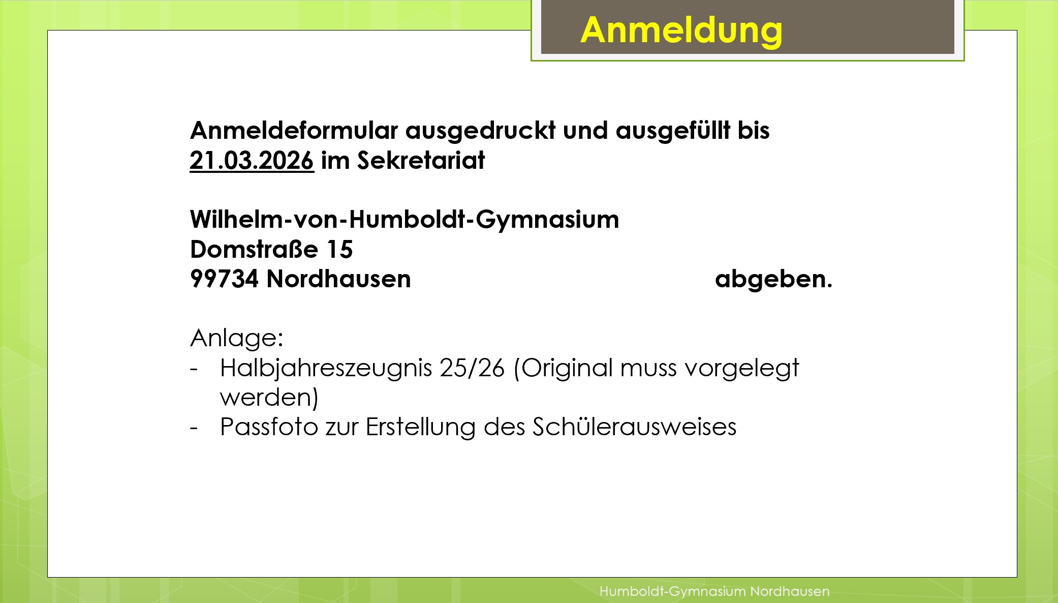 Anmeldung Gymnasium